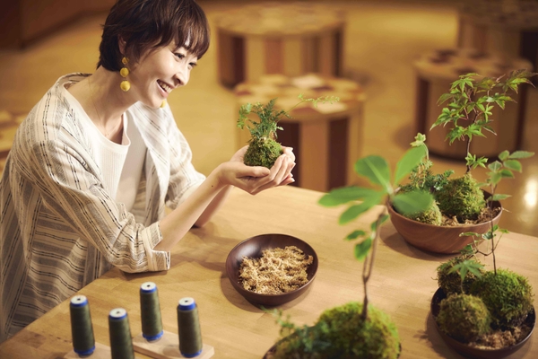 当プランでは、こけ玉を作ることもできます。材料には、苔やシダ、カエデなどを使用し、奥入瀬渓流に点在する苔むした岩を表現します。完成したこけ玉は、家に持って帰ることができます。