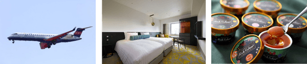 ※仙台空港発着往復航空券は、仙台発 札幌(新千歳)行き、名古屋(中部)行き、大阪(伊丹)行き、広島行き、福岡行きのいずれかが当たります。