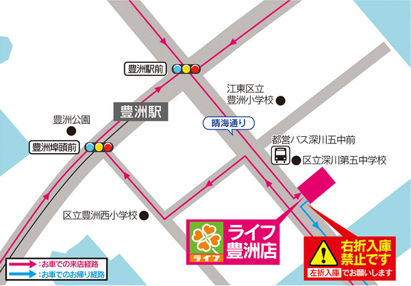 ・当店は東京メトロ有楽町線・ゆりかもめ線「豊洲」駅から約400mに位置しています。