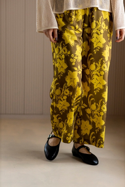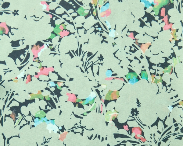 柄に合わせて素材を変更しており、グリーン系のカラーはジョーゼット素材を、オフホワイト系とブラウン系はツイル素材を使用しております。