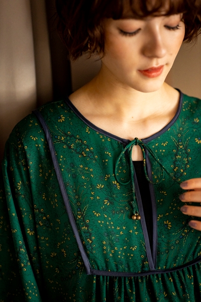 さりげなく揺れうごくような小花柄をセレクトし、アンティークでシックな緑のカラーにアレンジしました。旅で感じるそよ風の心地良さに溶け込むような落ち着く時間に出会えますように。