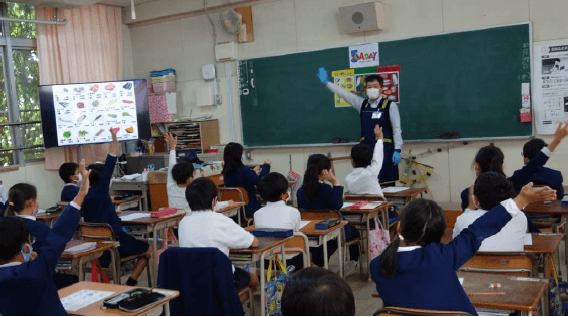 新型コロナウイルス感染拡大防止の観点から、実際の店舗での学習は昨年に引き続き実施せず、従業員が小学校や幼稚園・保育園に伺う出前授業やオンライン授業を実施いたしました。