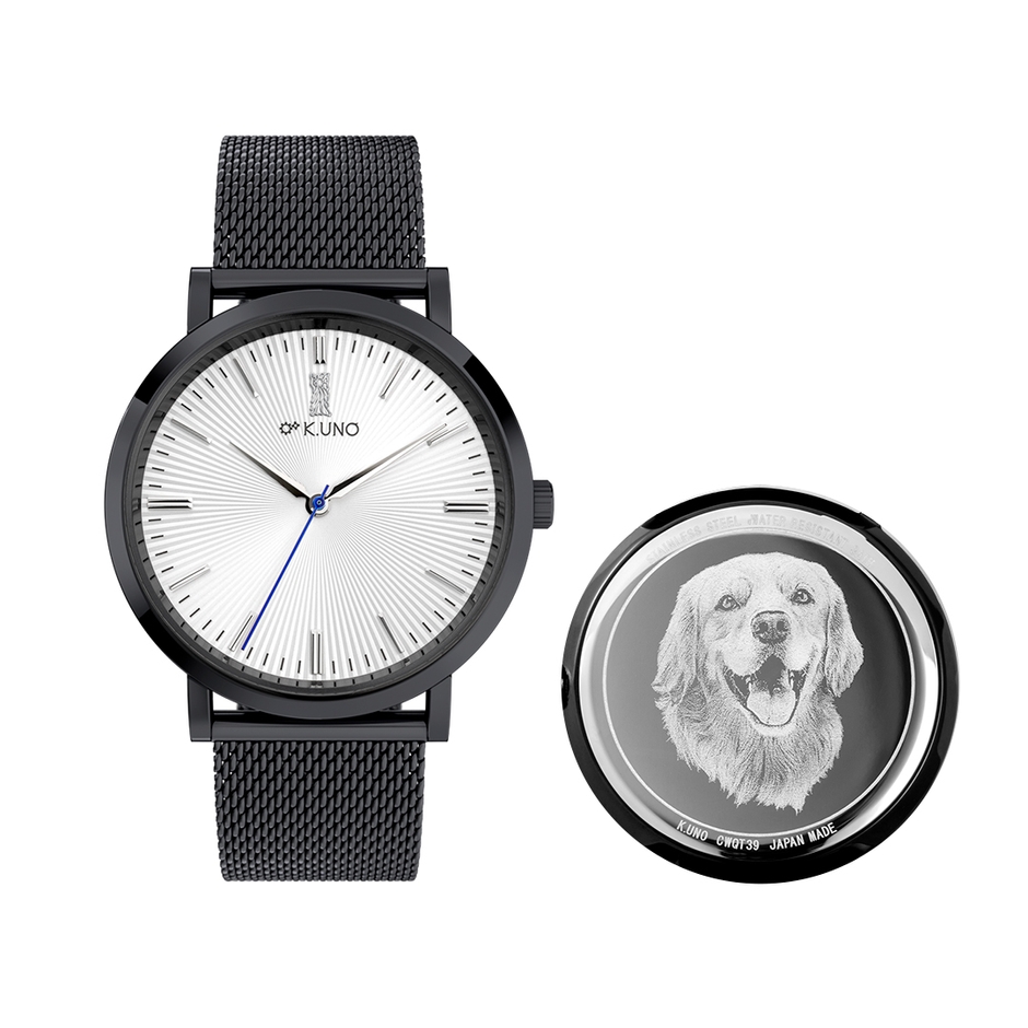 ケイ・ウノは、2007年より時計の研究開発をはじめ、宝飾部門出身の職人が製造を担当し、複雑な装飾品の作り方や貴金属を使った際の強度を計算するなど、オーダーメイドジュエリーで培った技術で、一点一点手作りされる機械式時計ならではの味わい、温かみを生み出しています。2017年10月に、日本製の機械式ムーブメントを使用したカスタムオーダー腕時計『Custo Wa(カストヴァ)』を発売。ケースや文字盤、インデックス(文字盤の上にある、時や分を表す目盛り)、針、ベルトを自由に組み合わせてデザインできます。このほどの「ペットデザイン腕時計」サービス」では、文字盤や針、ローター、裏蓋などにペットのデザインを取り入れることが可能です。