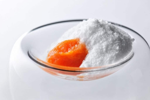 厳しい寒さの中、雪の下で育つことにより甘みが増した人参のピューレとカルダモンのグラニテを合わせた一品です。雪の下人参を乾燥させてからピューレにすることで華やかな香りが広がり、凝縮された甘みが際立ちます。エスプーマで仕上げた香り豊かなカルダモンのグラニテが重なり合い、人参の甘みと爽やかな香りが楽しめます。