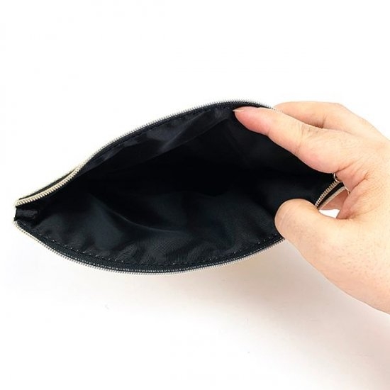 メイクポーチはもちろん、マスクポーチとしても活用できるサイズ感です。フラットなのでバッグの中でもかさばらず、スッキリ収納できちゃいますよ。