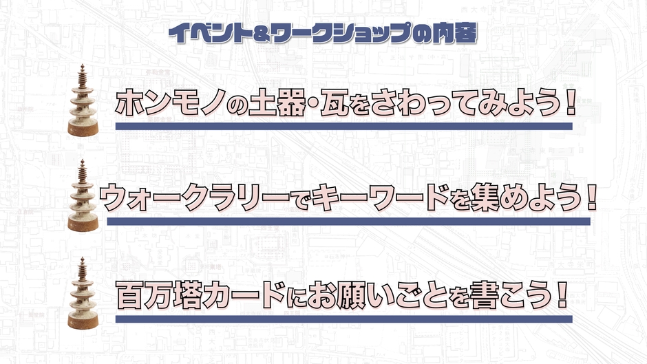 2024年2月に実施した、なら産地学官連携プラットフォーム・タスクフォース活動支援事業のワークショップ。ならファミリーのマスコットキャラクターでもあるラクダを通して、奈文研の研究成果も交えて紹介し、近隣の地下に眠る遺跡や文化財に興味をもつきっかけづくりを提供した。産地学官が連携して文化財を守り、伝え、活用することの実践形態を模索し、文化財や歴史を活かした地域産業の活性化、地域振興を目指す。