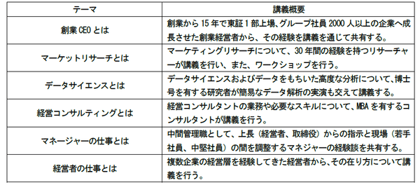 変化する社会の課題に対応していくためには、データを分析し、解決策を導き出すことのできる人材が求められています。寄付講座では、学術・ビジネスの両分野で企業経営、ビッグデータ解析を研究している小久保欣哉准教授が担当する講義「経営実践A」にて、クロス・マーケティンググループ創業経営者である五十嵐幹による企業経営の実務をはじめ、マーケティング、ビッグデータ解析、経営コンサルティングに長年携わるスペシャリストが講師として登壇。企業経営におけるデータ解析を実践的に学ぶ場を提供し、経営的視点をもつ解析者を育成します。