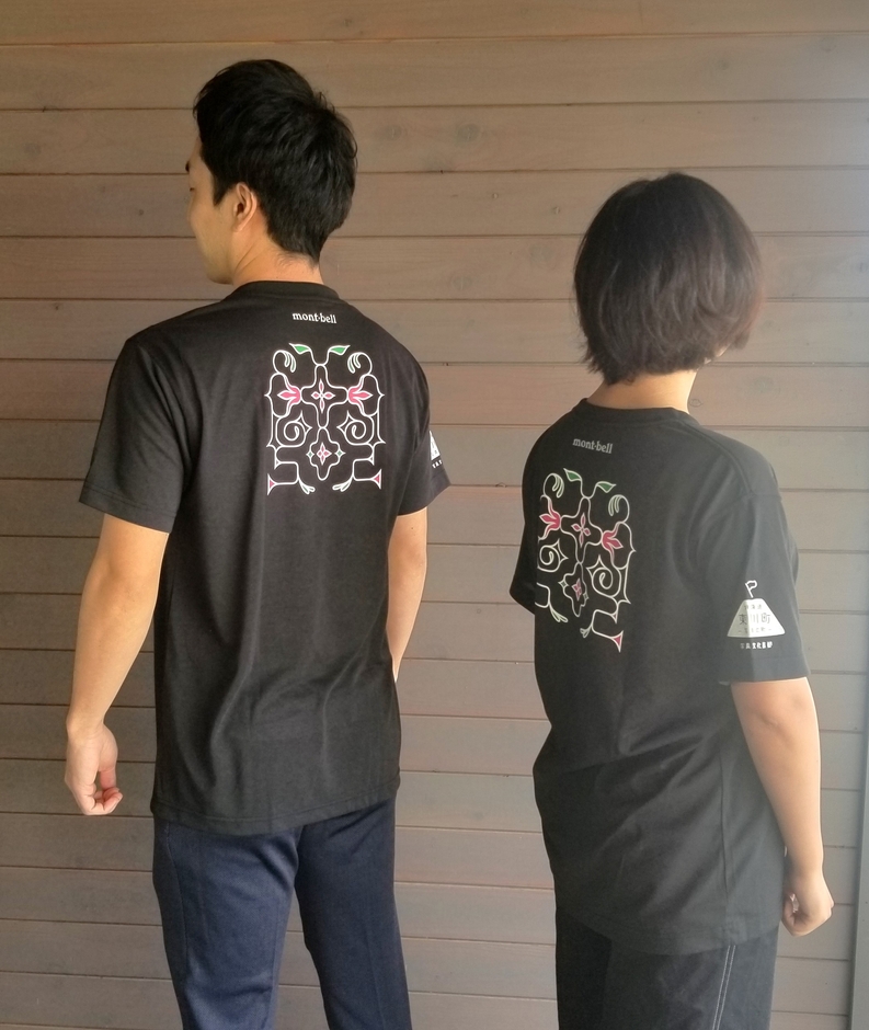 この度、旭川市の「川村カ子トアイヌ記念館」副館長を務める川村久恵氏がデザインをしたアイヌ文様と、東川町のロゴ入りTシャツをフレンドエリア大雪山ひがしかわ内でモンベル 大雪ひがしかわ店を構える株式会社モンベルに製作いただきました。Tシャツは東川ミーツせんとぴゅあ店にて11月6日(月)から3,080円(税込)で販売します。
