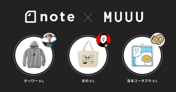 先行してnoteで活躍するかっぴーさん、まめさん、吉本ユータヌキさんのグッズを UUUM運営のオンラインストア「MUUU(ムー)」で販売します。