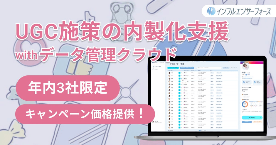 【3社限定】UGCを生み出すギフティング施策の内製化支援+インフルエンサー管理ツール「インフルエンサーフォース」を特別価格で体験してみませんか?