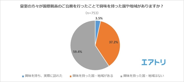 ―「興味を持ち、実際に訪れた」が3.5%、「興味を持った国・地域がある」と回答したのは37.2%となりました。