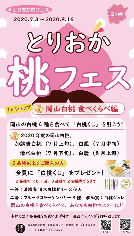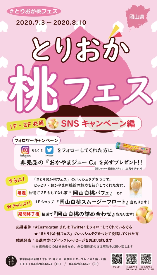 とっとり・おかやま新橋館のInstagram、Twitterのフォローや投稿で必ずもらえる!&抽選で白桃が当たる!