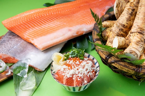 熱々のご飯にたっぷりの山わさび、しらす、かつお節、醤油などをかけて食べる北海道民の定番メニュー「山わさびごはん」。「#元気いただきますプロジェクト」に参画して、「サーモンといくらの山わさびごはん」をライブキッチンで仕上げて提供します。すりたての山わさびのピリっとした辛さにテンションアップ間違いなしです!
