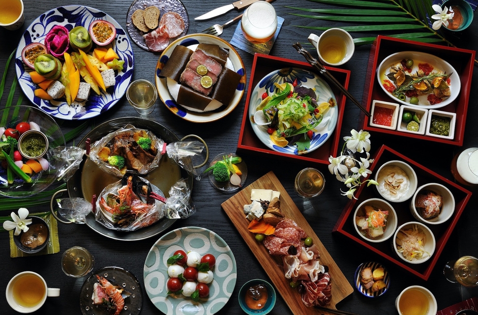 グスクでは、訪れる人々をもてなすために沖縄の食材を活かした料理を振舞っており、その料理を囲み、複数人で集まって食卓を楽しむ食文化が根付いていました。星のや沖縄では、沖縄の食文化をもとに、現代に合わせた新たな食の楽しみを提案します。
