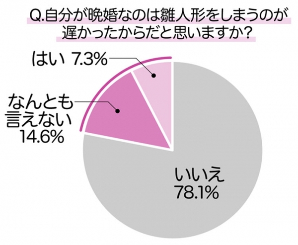 結婚歴がある女性、ない女性で、ひな人形を片付ける時期に違いがあったのか。
