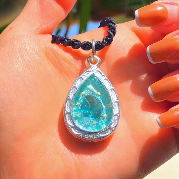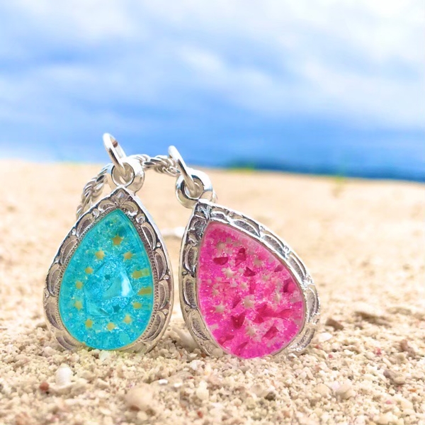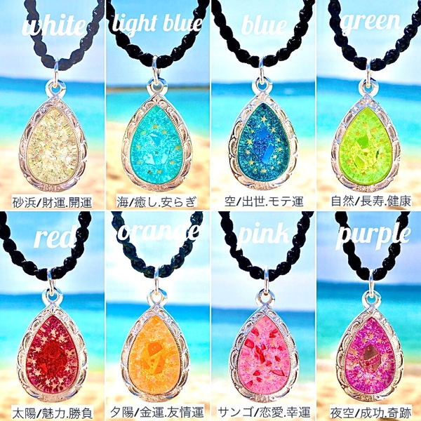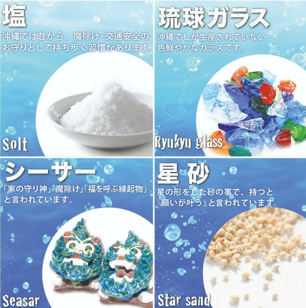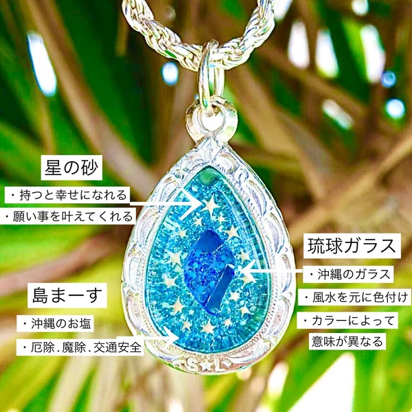 トップの中には沖縄を代表する【星の砂、琉球ガラス、島まーす(塩)】が入っていてそれぞれに意味があります❤️