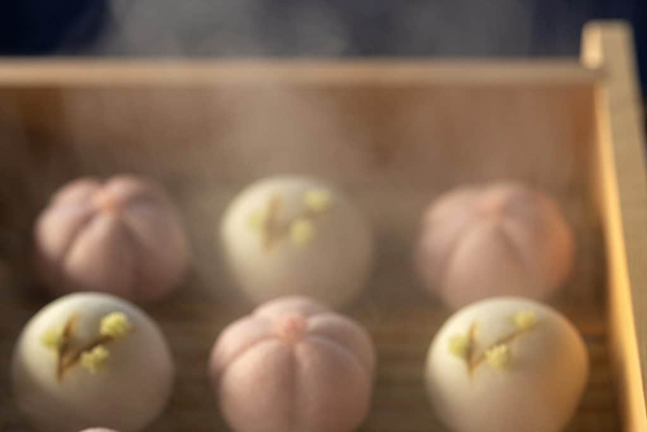 華道体験の後は、自身が活けた花を眺めながら抹茶と暦を映した和菓子を味わいます。和菓子は、1803年創業の京菓子司(きょうがしつかさ)「亀屋良長(かめやよしなが)」が本アクティビティのために特別に手掛けたものです。芽やなぎや春告草をイメージして仕上げており、春の訪れを感じられます。奥嵐山の凛とした空気に触れた後、和菓子と抹茶で温まり身も心も安らげます。
