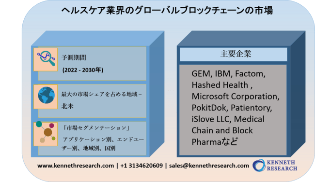 リサーチ・ネスターの一部門であるケネス・リサーチは、2021年11月16日に「ヘルスケアにおけるグローバルブロックチェーン市場:グローバル需要分析と機会見通し2030」と題する調査レポートを発表しました。これは、市場の詳細な業界需要分析と、市場の成長に影響を与えるさまざまな要因を提供します。このレポートは、予測期間、市場価値、市場規模、成長率、セグメント、市場プレーヤー、成長ドライバーなどの市場成長を提供します。調査方法には、市場評価に基づく過去および現在のデータの収集および予測データの計算が含まれます。このレポートのデータ収集には、一次調査と二次調査の両方が含まれます。