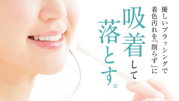 私たちが毎日行っている習慣の一つ、歯磨き。この歯磨きの多くが研磨剤でのブラッシングにより歯の表面のエナメル質が傷つきやすく、細かな傷にコーヒーやお茶などのステインが入り込み着色の原因になるということに着目し、ブラッシングすることで歯を削らず吸着して落とす歯磨きパウダーを開発しました。