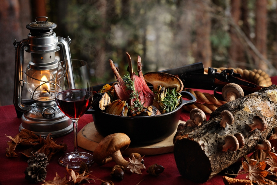 <ツアー後におすすめの夕食:グランピングスタイルの狩猟肉ディナー>