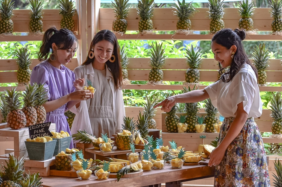 ピーチパインを栽培するには、“酸性”土壌が適していると言われ、産地が限られています。また、収穫時期は非常に短く、わずか2か月ほどです。そのため生産量が少なく、市場に出回ることも珍しいため「幻のパイン」ともいわれています。一足早い夏の西表島でピーチパインを味わい、その奥深い魅力を知ってほしいという思いから、2021年は、西表島のパイン農家さん協力の元、旬のパインを集めたパイン祭りを開催しました。2022年は、“ピーチパイン”だけにこだわりピーチパイン祭りを開催することに至りました。