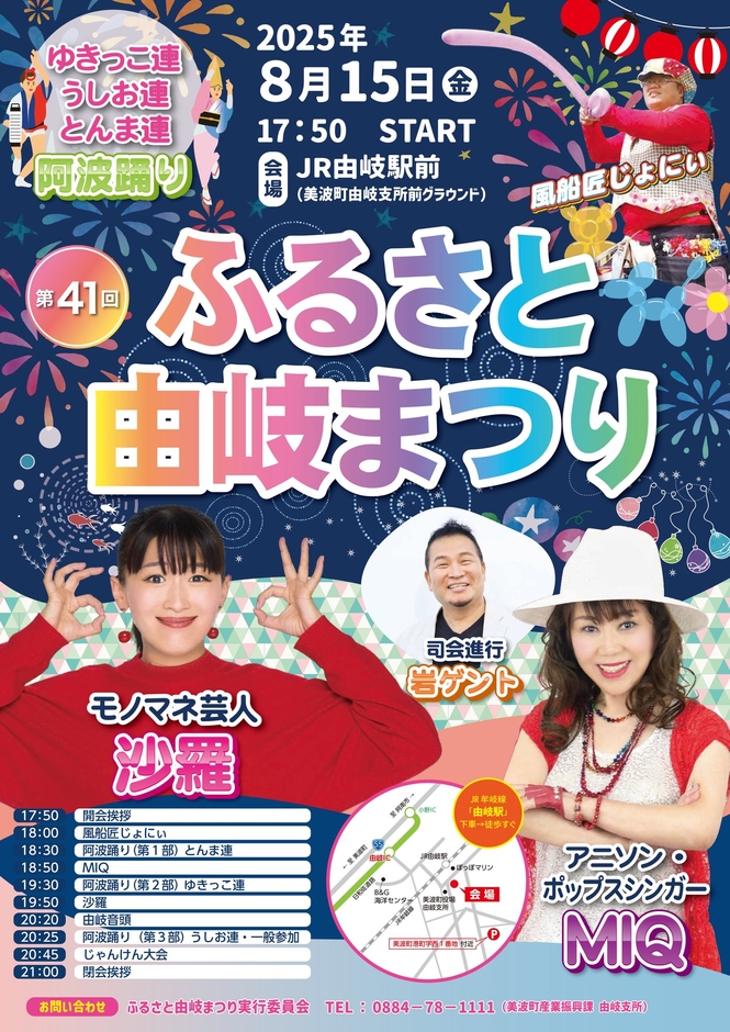 内容:モノマネ芸人、歌手による歌謡ショー、地元の阿波踊り連のゆきっこ連などの阿波踊りなどが開催されます。