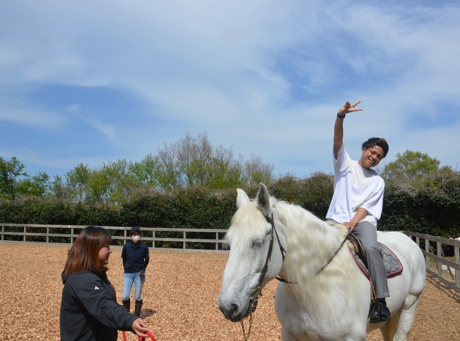 滋賀県栗東市は競走馬のトレーニングセンターもあることから「馬のまち」とも知られる。ツアーでは「TCC Therapy Park」を訪れ、馬とのふれあい乗馬体験もおこなった。「TCC Therapy Park」は怪我などで行き場のない引退直後の競走馬を受け入れ、人のために頑張ってきた馬たちに寄り添い、安心して余生を暮らせる活動をしている。