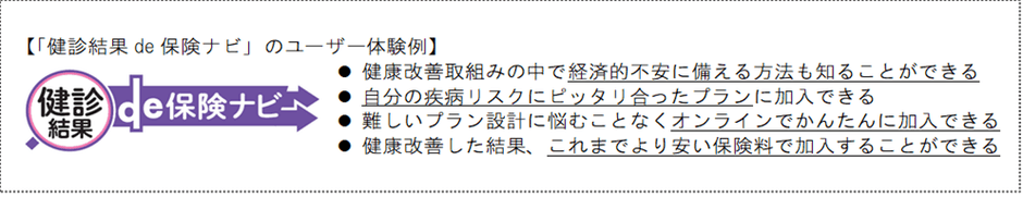 「Neoコーチ」アプリではユーザーさまの健康診断結果の改善のサポートだけでなく、生活習慣改善取組みの成否にかかわらず存在する疾病リスクに備えて経済的な不安を解消する手段の一つとして、ユーザーの納得度の高い医療保険プランのご提案をする「健診結果de保険ナビ」機能が実装されています。