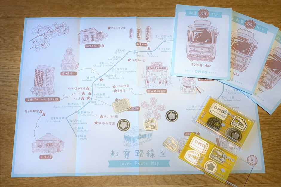 旅のテンションを上げるグッズとして、オリジナルの「都電旅マップ」と「都電クリップ」をプレゼントします。都電旅マップはOMOオリジナルで、スタッフおすすめの立ち寄りスポットがレトロ可愛いイラストで記載されています。都電の沿線には、商店街や神社など、どこかノスタルジックな風景が見え、普段の東京のイメージとはまた違った風景が見られるのが特徴。