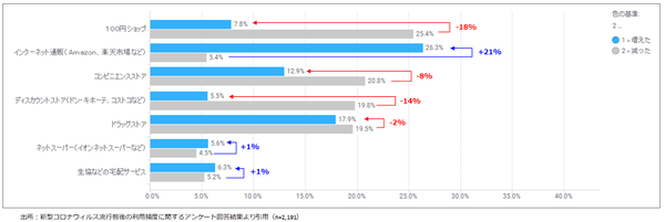 - コロナ流行前後におけるスーパー以外の利用実態の変化