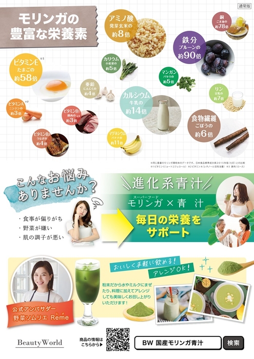 第1弾商品「国産モリンガ青汁」詳細は「BW 国産モリンガ青汁」で検索。