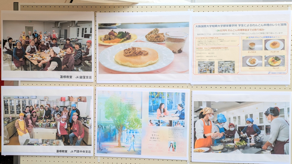 11月11日にJA北河内門真中央支店にて2023門真市農業まつりが開催され、栄養学科の海老澤セミナーが出展しました。海老澤セミナーでは、2年生が門真れんこんを使った料理の開発に取り組んでいます。10月13日、20日にはJA北河内の女性部会にて料理教室を開催し、学生考案の料理4品を女性会のメンバーの皆様とともに学生が調理しました。