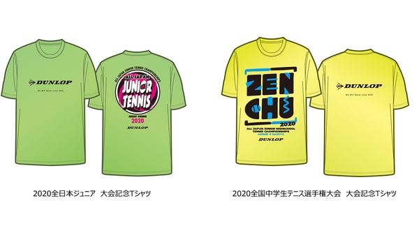 住友ゴムグループの(株)ダンロップスポーツマーケティングは、新型コロナウイルスの影響で開催中止となった「DUNLOP SRIXON 全日本ジュニアテニス選手権 supported by NISSHINBO(以下「全日本ジュニア」」および、「全国中学生テニス選手権大会(以下「全国中学生テニス選手権大会」)」の大会記念Tシャツを7月28日まで受注生産で販売中です。各大会4カラーで、メーカー希望小売価格は、2,500円+税です。また、今回ご購入いただいたお客様には、今年度の大会使用球として使用される予定だったテニスボール「ダンロップオーストラリアンオープン(2球入)」を1枚につき1ペット付けての販売となります。