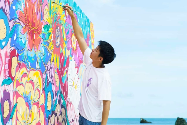 圧倒的な絶景とスケールを誇る海カフェ「星野リゾート バンタカフェ」では、2023年3月25日から5月7日に「海辺のアートフェスティバル」を開催します。日差しのやわらかな春に、海辺でのんびりと過ごしながら、最旬の沖縄アートに触れることができるイベントです。青い海と空を背景に行うライブペイントでは、大きなキャンバスに作品が描かれていく過程を見学できるほか、崖の上から浜辺へと続く散策路に点在する「海辺のテラス」や併設のグリルレストランにアートの装飾を行います。3年目となる今年は、アートをテーマにした限定ドリンクを提供するほか、ライブペイントを間近で眺められるカフェスペースが登場。色彩豊かなアートと共に、沖縄の美しい海を楽しみます。