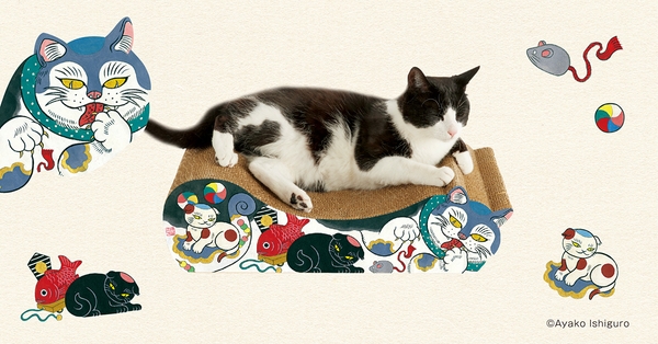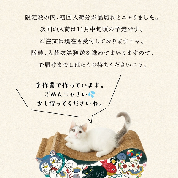 ユーモアたっぷりの絵巻物のような猫がたくさんの爪とぎ『石黒亜矢子コラボ 招福まねきごろん猫』が大注目!次回入荷は11月中旬頃に決定しました。