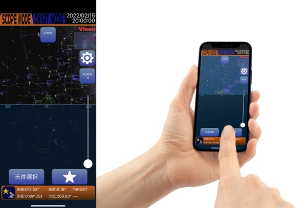 (※)アライメントとはアプリ「STAR BOOK Wireless」が記憶する天体座標上の位置情報と実際に見える星の位置(視位置)を一致させる作業です。