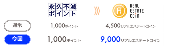 『IT』×『都心』×『不動産』で価値を創造する企業、プロパティエージェント株式会社(本社:東京都新宿区、代表取締役社長:中西 聖)が運営する不動産特定共同事業法(以下、「不特法」)に基づく不動産投資型クラウドファンディングサービス「Rimple(リンプル)」(以下、「Rimple」)は、株式会社クレディセゾン(本社:東京都豊島区、代表取締役(兼)社長執行役員COO:山下 昌宏)が提供するポイントプログラム「永久不滅ポイント」から「Rimple」にて使用できる「リアルエステートコイン」への交換レートが、2020年3月25日(水)から4月7日(火)までの間は2倍になる「交換レートが2倍になっちゃうキャンペーン」を実施いたします。