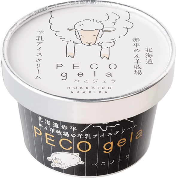 ぺこ・ジェラは、イタリア語の「羊」を意味するペコラと、アイスクリームを意味するジェラートから組み合わせて名付けられました。原材料となる羊乳は、北海道赤平市にある「赤平めん羊牧場」で育てている羊から搾乳したもので、脂肪分、固形分ともに高く、アイスクリームにするととても濃厚な味わいになります。