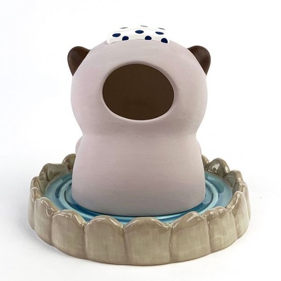 立体的なねむねむアニマルズ。頭に温泉のトレードマークを乗せて手には柚子かな?気持ちよさそうに温泉に浸かる様子がほっこり癒されますね。こちらはインテリアとしても使える加湿器です♪本体部分は素焼きで出来ています。
