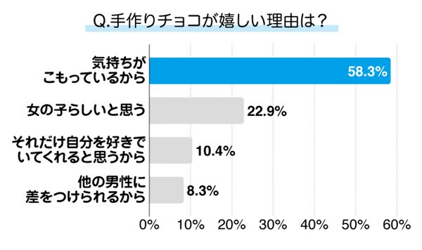 1. 自分もよく知る女性からの手作りチョコは「気持ちがこもっている」とプラス評価