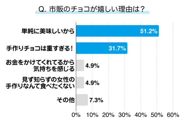 また「なぜ手作りチョコが良いのか」「なぜ市販のチョコが良いのか」という問いに対しては、次のような回答が得られました。