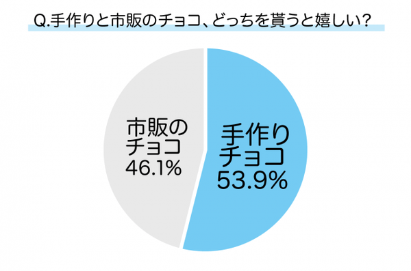 手作りチョコと市販チョコはケースバイケースで選ぶ手作りチョコと市販チョコのどちらが好ましいかについては、男性の意見は二分しました。