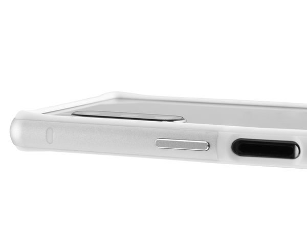 液晶画面やカメラを下にして置いた時にテーブルなどに擦れないように四つ角部分を凸型設計にしているため、傷がつきにくくなっています。