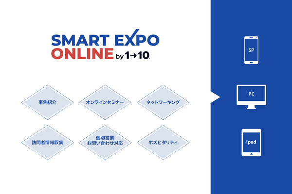 株式会社ワントゥーテン(本社:京都市、代表取締役社長:澤邊芳明/サワベヨシアキ、以下 ワントゥーテン)は、新型コロナウイルスの影響によりコミュニケーションが大きく制限された状況に対するソリューションとして、リアルでの体験をボーダレスにオンラインの体験に変換できるオンラインイベントプラットフォーム「Smart Expo Online(スマートエキスポオンライン)」の提供を開始しました。このプラットフォームを活用して、オンラインでの展示会、イベントにおける新しい体験を実現し、DX(デジタルトランスフォーメーション)を推進していきます。