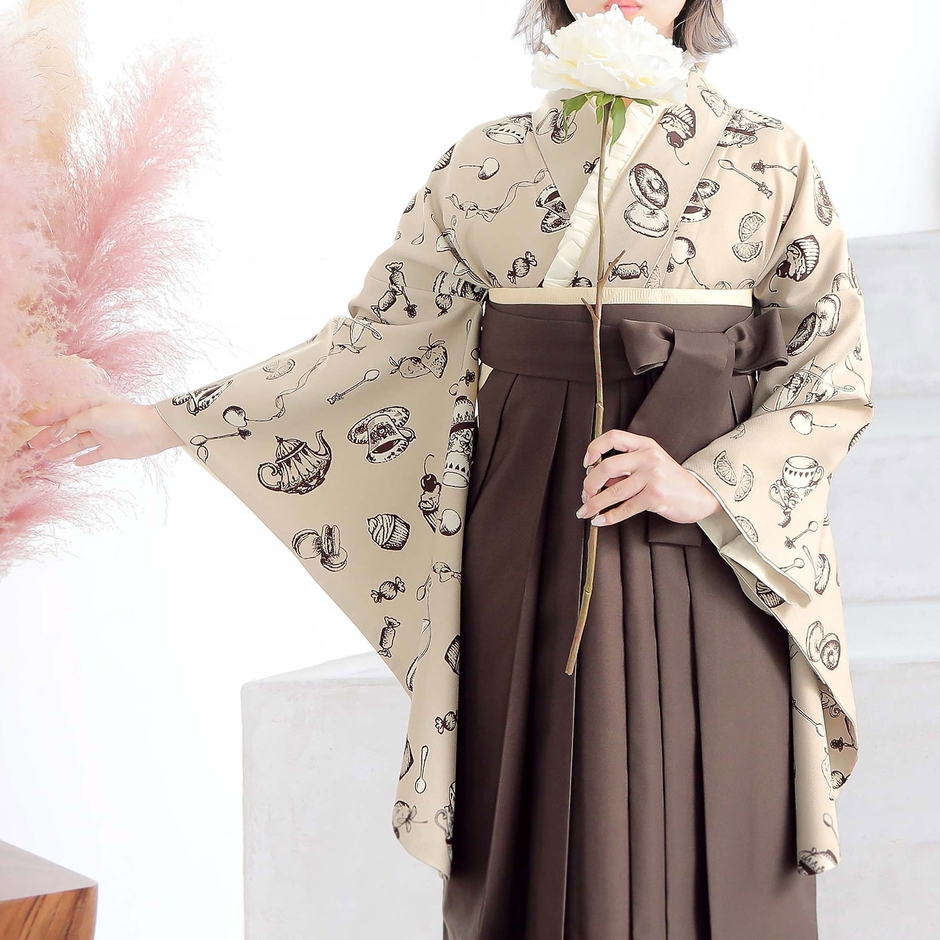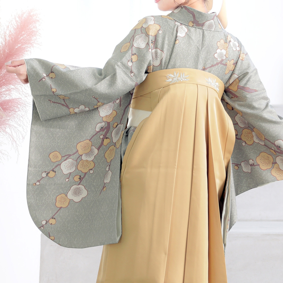二尺袖着物は小振袖の一種で、袖の長さが二尺(約76cm)であることが名称の由来です。特長としては、振袖に比べて袖が短い、袖が短いので動きやすい、袴と合わせた時のバランスが良いなどがあげられます。二尺袖を袴に合わせるスタイルの「二尺袖袴」は、卒業式を迎える学生の方々に人気です。