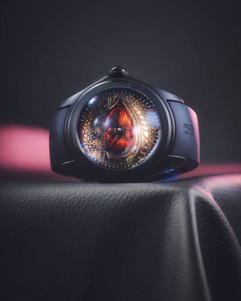 高度な技術で、厚さ8mmのサファイアクリスタルを滑らかなドーム型に成型。見る角度によって龍の眼が拡大・縮小し、浮かび上がっているようにも感じられる唯一無二の仕様が、所有者の満足感を高めます。
