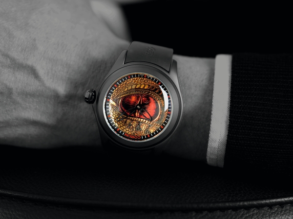 龍の眼と鱗が手作業で描かれた「ドラゴン アイ」ダイアル。複雑な凹凸と濃淡が印象的で、まるで目の前に龍がいるかのような臨場感を際立たせています。