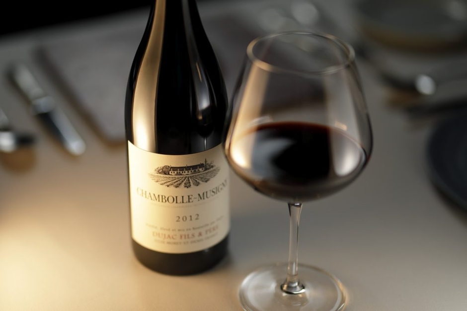 ワインと料理のペアリングで、さらに食事を楽しめるよう、料理に合わせるこだわりのワインペアリングも用意しています。一例として、メインの料理「鳩と山菜」には、フランス、ブルゴーニュ地方の赤ワインを合わせるなど、独創的な料理との組み合わせを提案します。