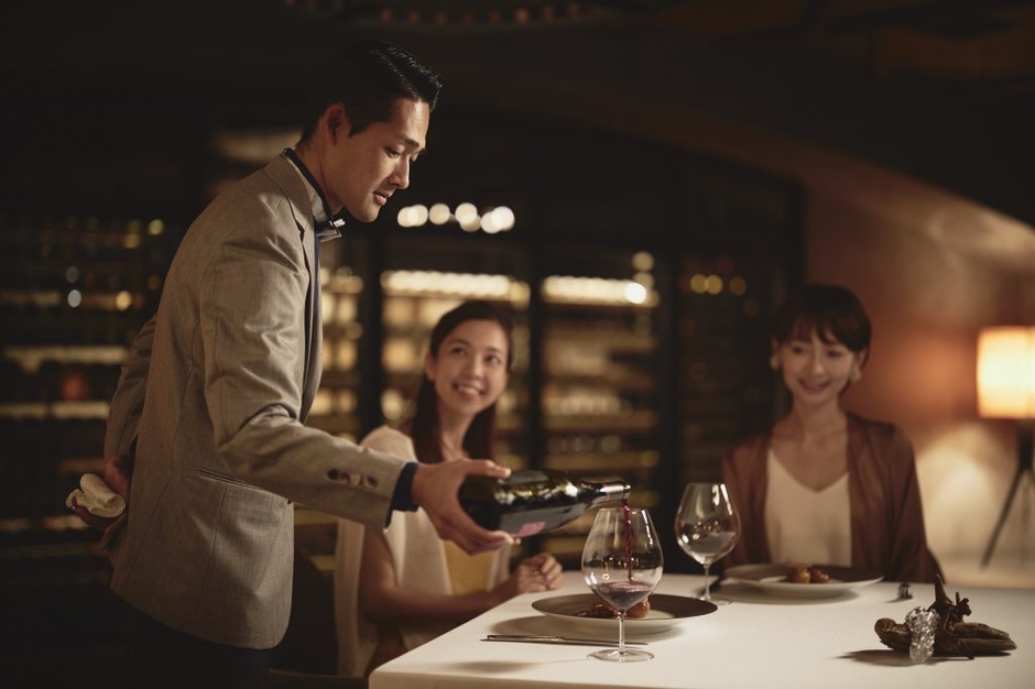 ダイニングは、奥入瀬渓流の自然をイメージし、岩や木をモチーフにした内装で、ゆっくりと食事を楽しむことができます。メニューは、季節の旬の食材を使用し、フランス料理の技法を元に、青森らしさを表現します。また、料理と共に世界中から厳選された銘醸ワインも楽しむことができるのも特徴のひとつです。約150種類、2000本のワインを用意しています。