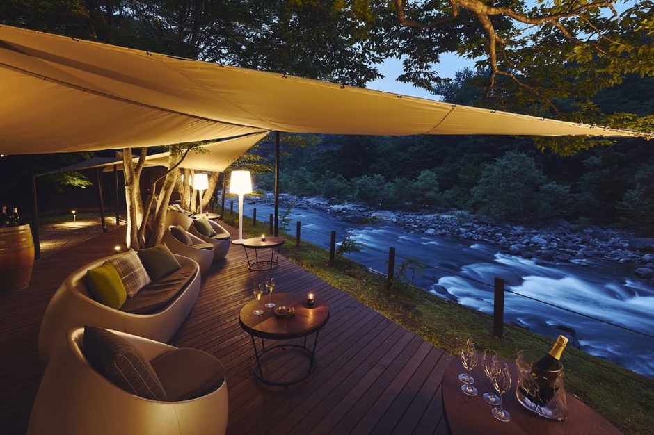 2019年7月グランドオープン。「Sonore」とは、フランス語で「朗々と響かせて」という意味の音楽用語で、渓流の瀬音や料理、希少なワインが心身に朗々と響き渡るという意味が込められています。